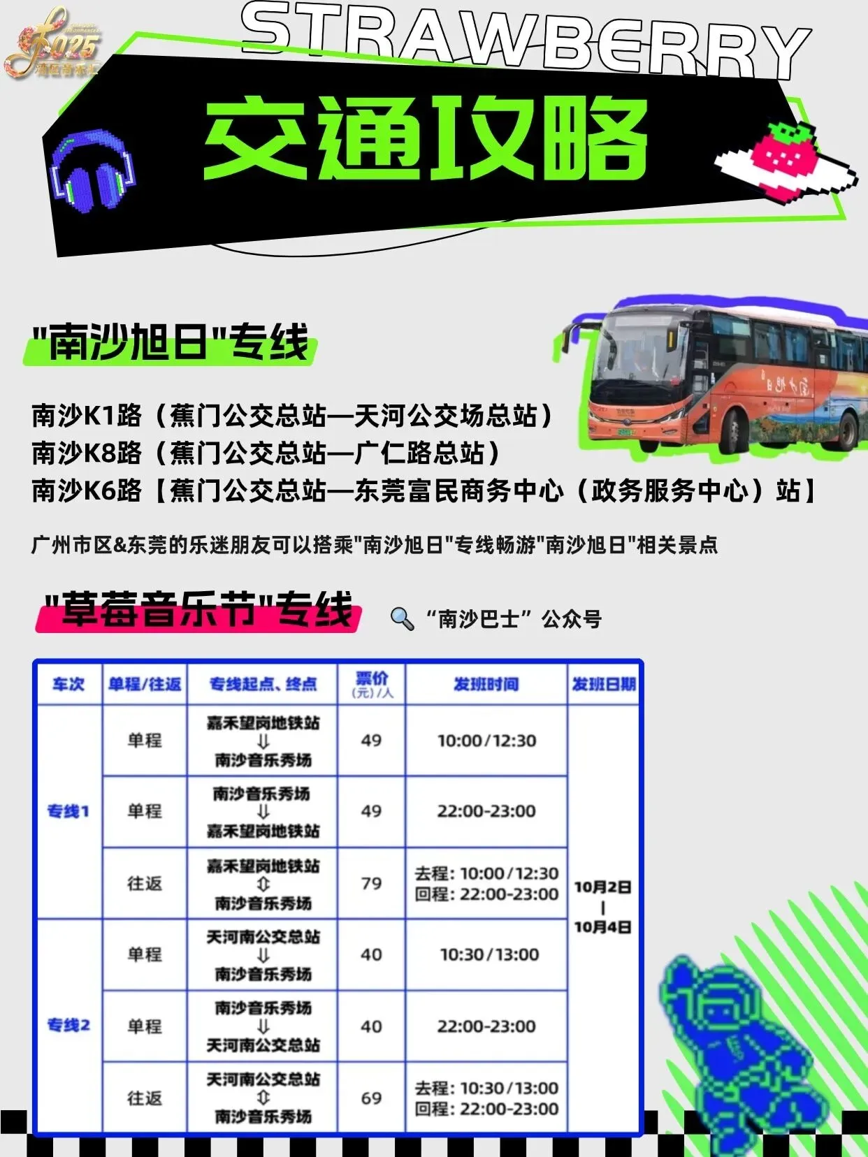 广州超级草莓音乐节国庆锁定广州南一边吹着温柔海风一边跟着顶流阵容蹦迪这体验简直不要太浪漫!【三大舞台·神仙打架】口味王·草莓舞台A动力火车·草莓舞台B星球舞台莫文蔚、杨千嬅、陈楚生、周柏豪陈粒、告五人、夏日入侵企画……一次性收割心爱歌单!连蹦3天不重样【看海+度假一日游路线】海边治愈感直接拿捏️▪️20公里美丽海岸线:南沙游艇会(欧式长廊复古建筑)→南沙国际邮轮母港(休闲观光娱乐优选地🩵)→蒲洲花园(童话森林滤镜拉满️)→南沙天后宫(登高祈福️)→南沙滨海公园(南沙“情侣路”吹海风)→慧谷超级堤(追一场浪漫日落)▪️“轻度假”治愈之旅:南沙湿地(赏芦花观候鸟🦢)→十四涌吃海鲜→疍家妹疍家菜馆→大湾区文化体育中心(实现“边看比赛边看海”)→十九涌渔人码头→渔唱晚生态精品民宿(享受田园诗意体验)️【周边逛吃指南】蹦完音乐节别急着走!周边商圈超好逛:南沙万达广场、南沙星河COCO Park南沙环宇城、悠方天地……吃喝玩乐一站式搞定而且凭音乐节门票可享多重福利!【交通懒人包】广州/东莞党:可乘“南沙旭日专线”K1/K8/K6直达南沙蕉门音乐节专线(10月2日至4日开通):白云线:嘉禾望岗H口↔南沙音乐秀场天河线:天河南公交站↔南沙音乐秀场提前在 “南沙巴士”,满35人发车~【大湾区直通车】佛山、江门、中山、珠海深圳、东莞、惠州都有班次“广之旅”小程序搜“草莓音乐节”满25人成团~建议提前锁定位置,返程最晚到22时【住宿超值指南】五星级南沙大酒店、美居酒店、亚朵、全季……超多酒店优惠超值享【小贴士】海边蹦迪记得带防晒+薄外套提前下好歌单预习演唱会曲目 10月2日至4日 南沙音乐秀场这个假期快来南沙边看海边蹦迪吧来源:广州市文化广电旅游局编辑:刘嘉欣校对:胡霞霞二审:梁思静终审:李夏同签发:李立志出品:南沙区融媒体中心 投稿邮箱:nanshanet@126.com(本文由“广州南沙发布”原创发布,未经授权,任何媒体、公众号不得转载改编,欢迎分享到朋友圈。)思考配资提示:文章来自网络,不代表本站观点。